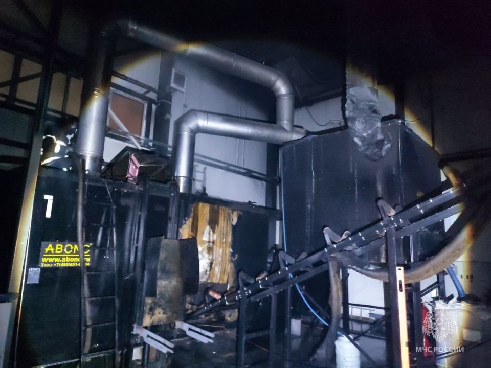 В здании одного из цехов загорелась сушильная камера и конвейерная лента. Площадь пожара — 20 квадратов. Открытый огонь уже потушили, причину выясняют. Пострадавших нет.